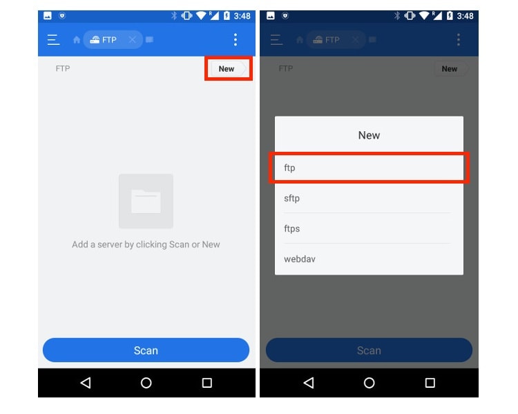 (iii) Tap ‘New’, which is present on the top right corner and then tap “FTP”.